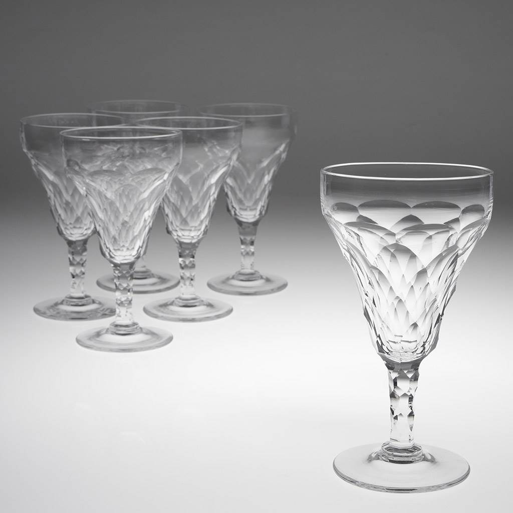 The cutting on these glasses is of outstanding quality. but unfortunately we have been unable to identify the producer. They were purchased from a long established Kensington Church Street antiques dealer in the 1970s by the current owner and were sold as late 19th century. They have not been used once in around 50 years. only displayed. Anything approaching this quality nowadays would retail for above £200 per glass. These are red wine glasses.