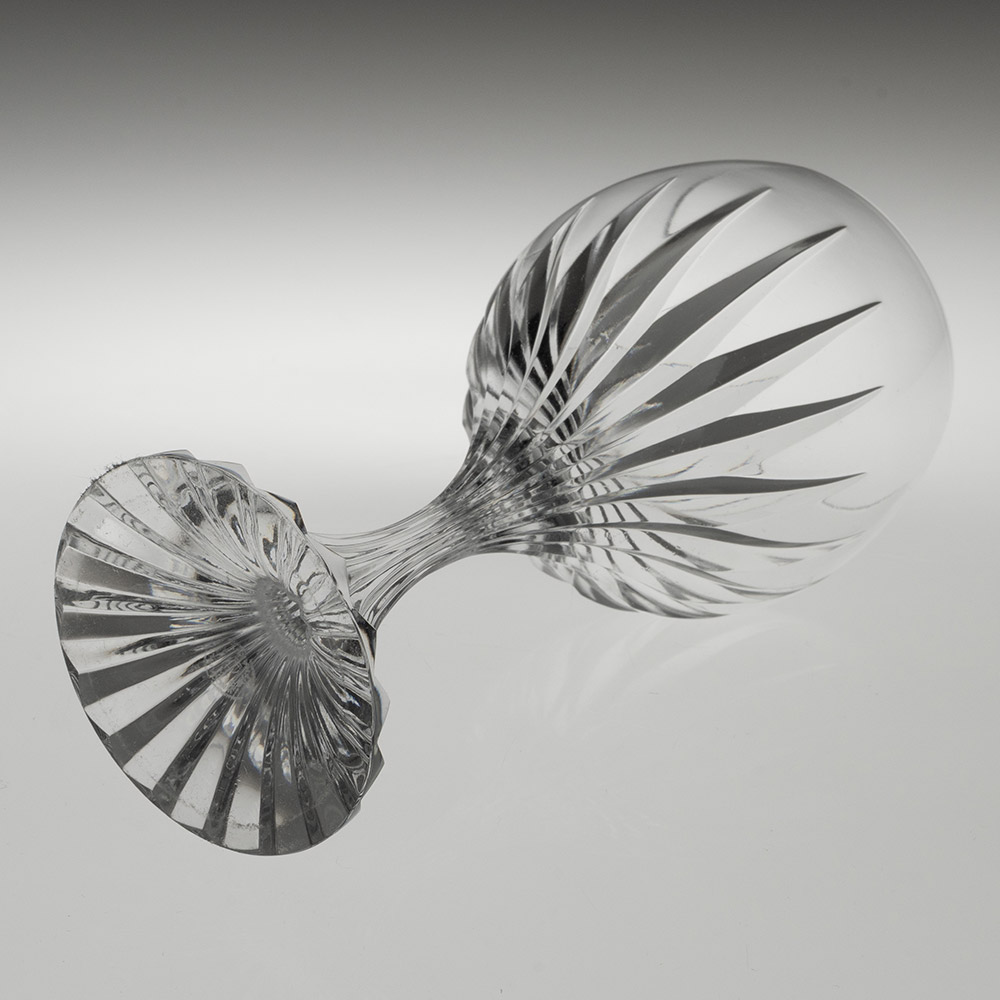 Bowl : Cup shaped with deep mitre cuts that continue down the stem and onto the foot
