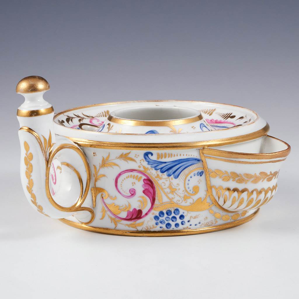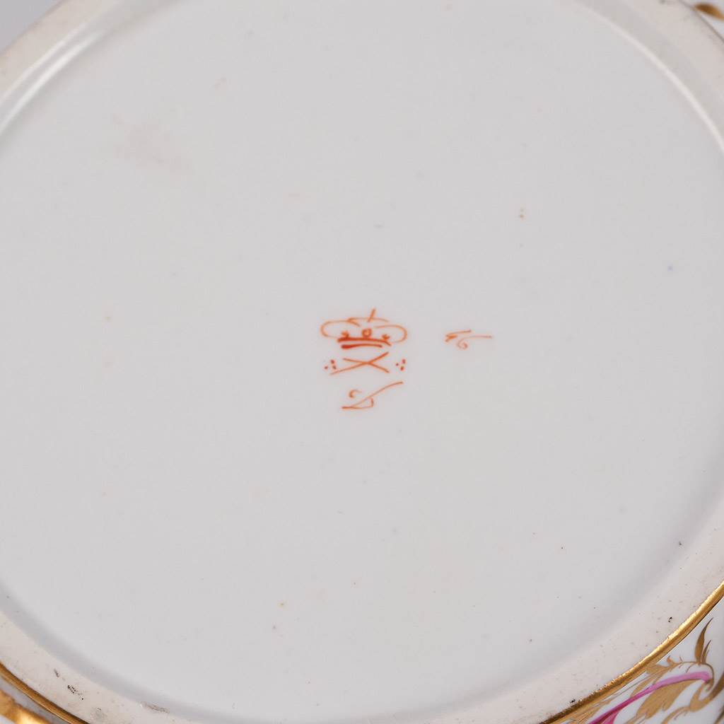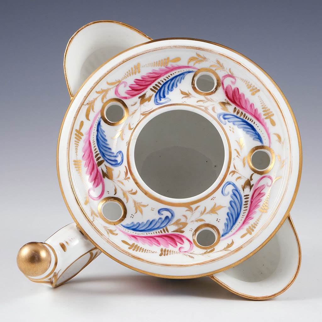 Restoration One of the pocket rims has a restored chip and has been re-gilded; kiln-spit to the inside junction of base and side
