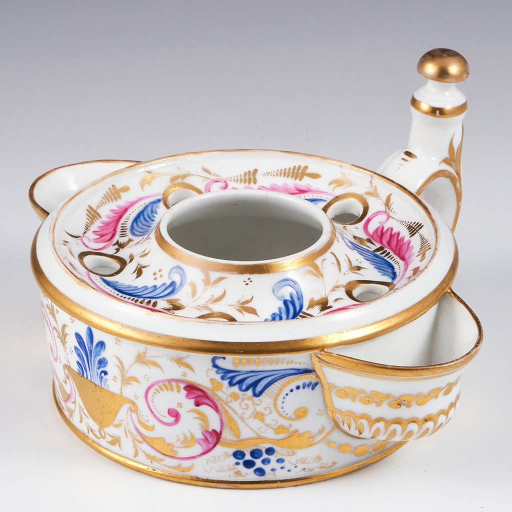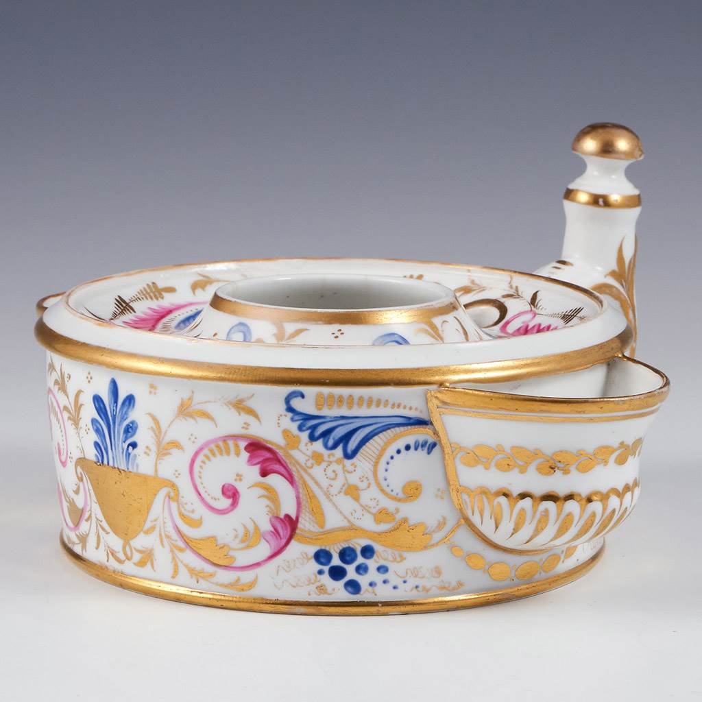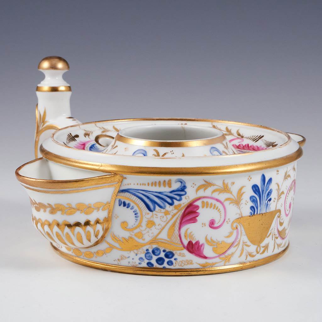 Restoration One of the pocket rims has a restored chip and has been re-gilded; kiln-spit to the inside junction of base and side