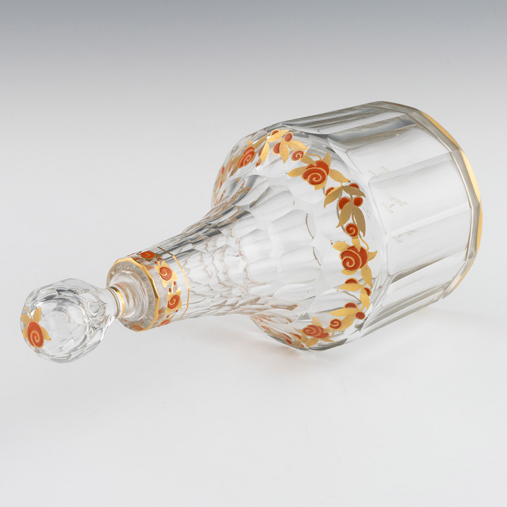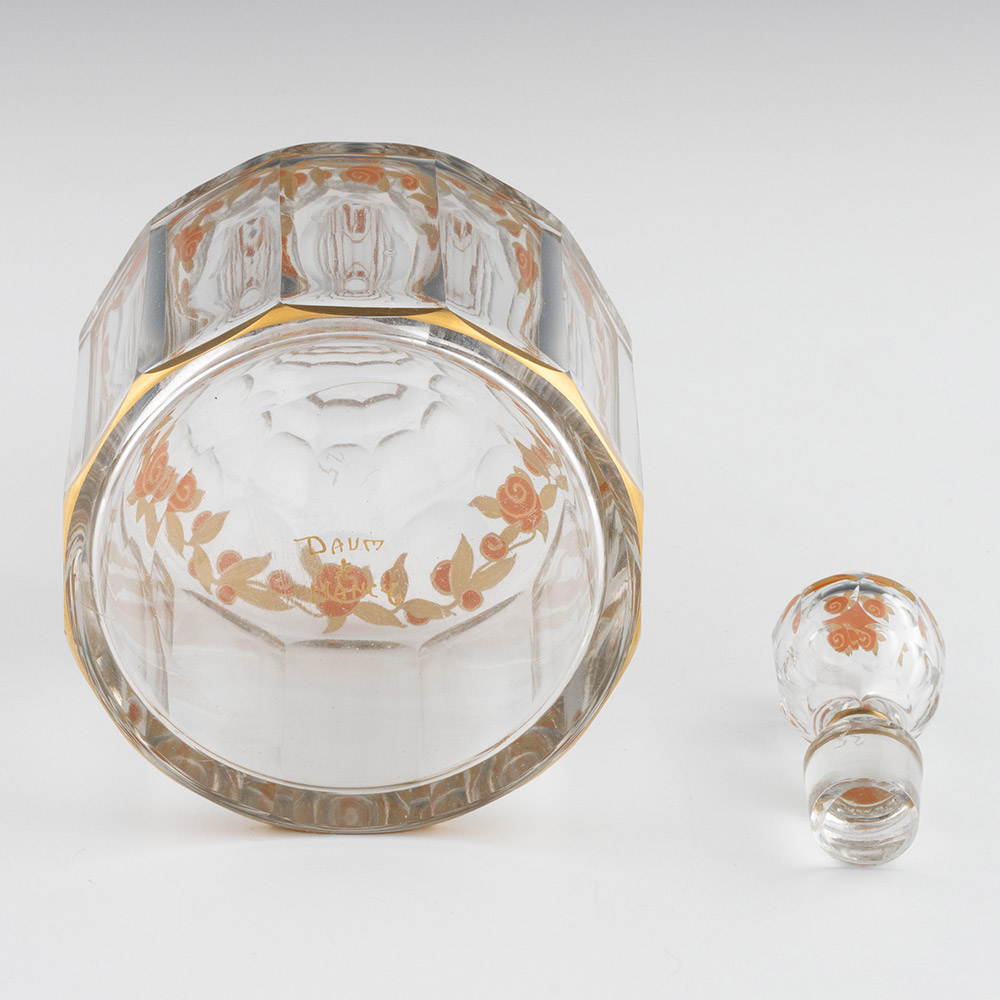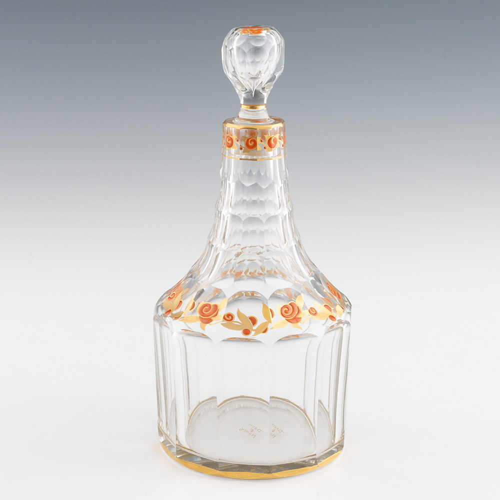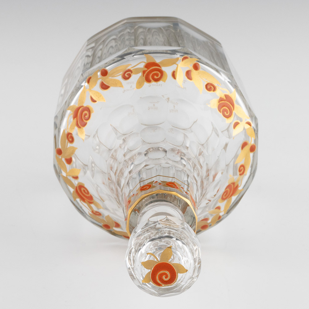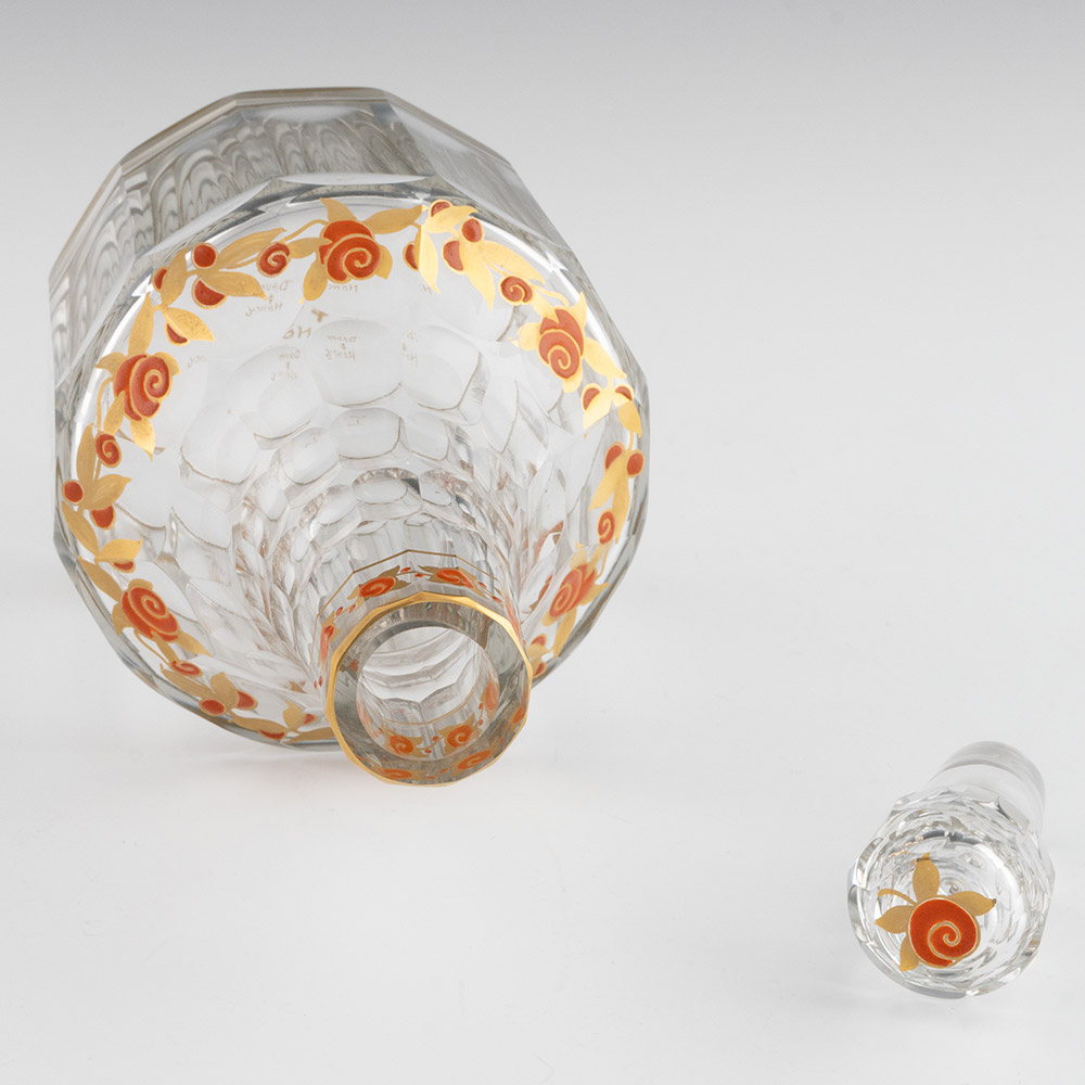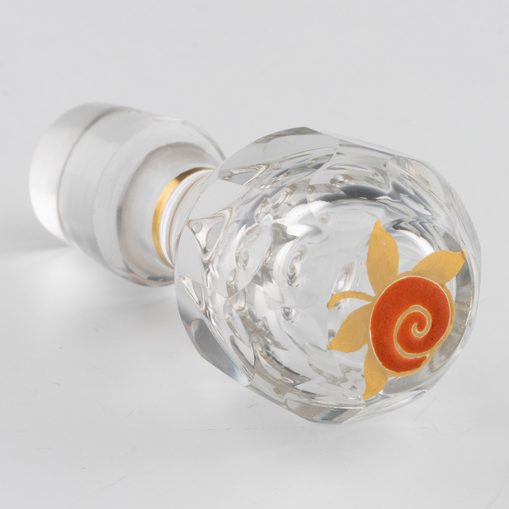 Stopper : Holow faceted stopper with gilt band and gilded and enamelled flower.