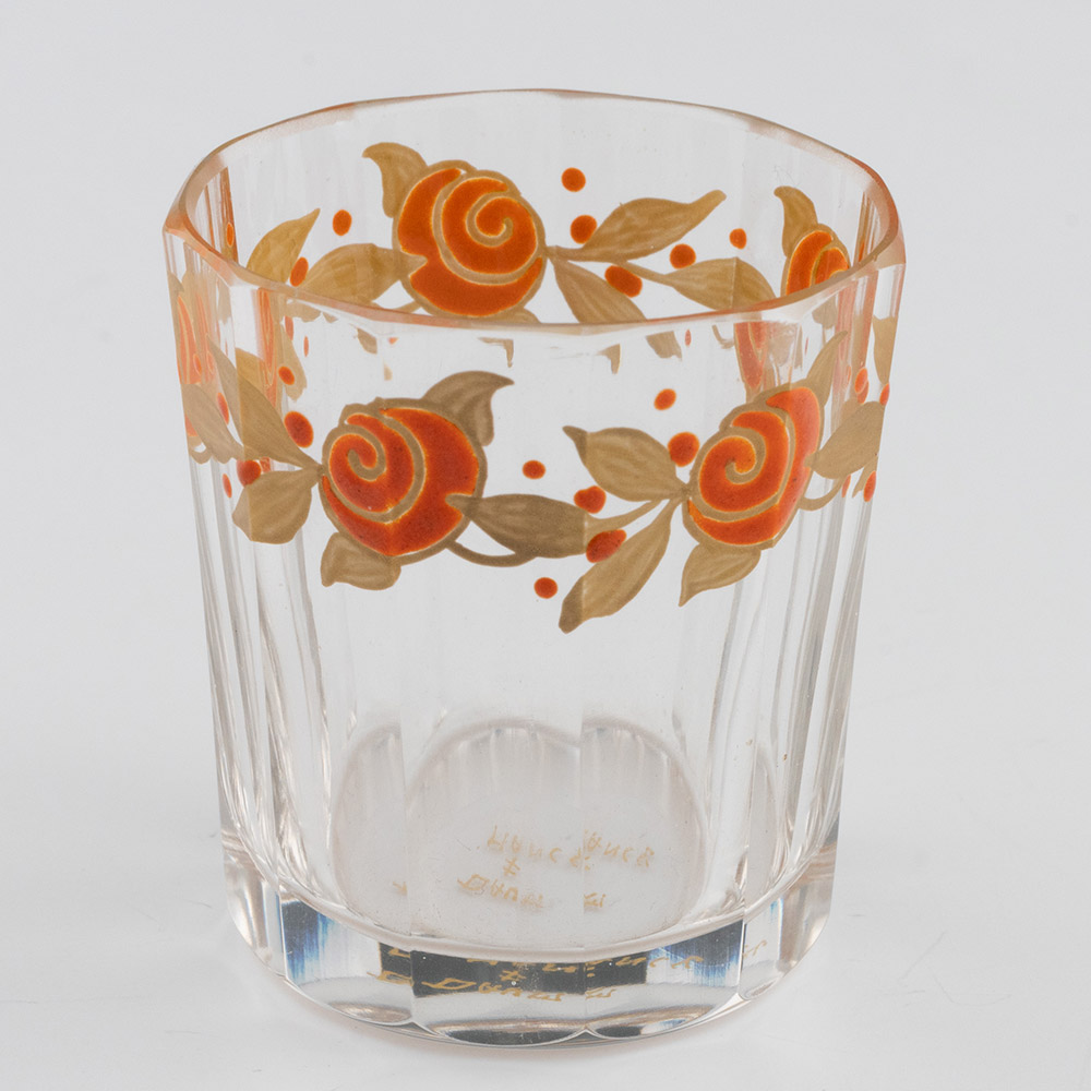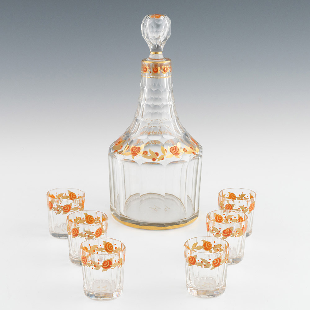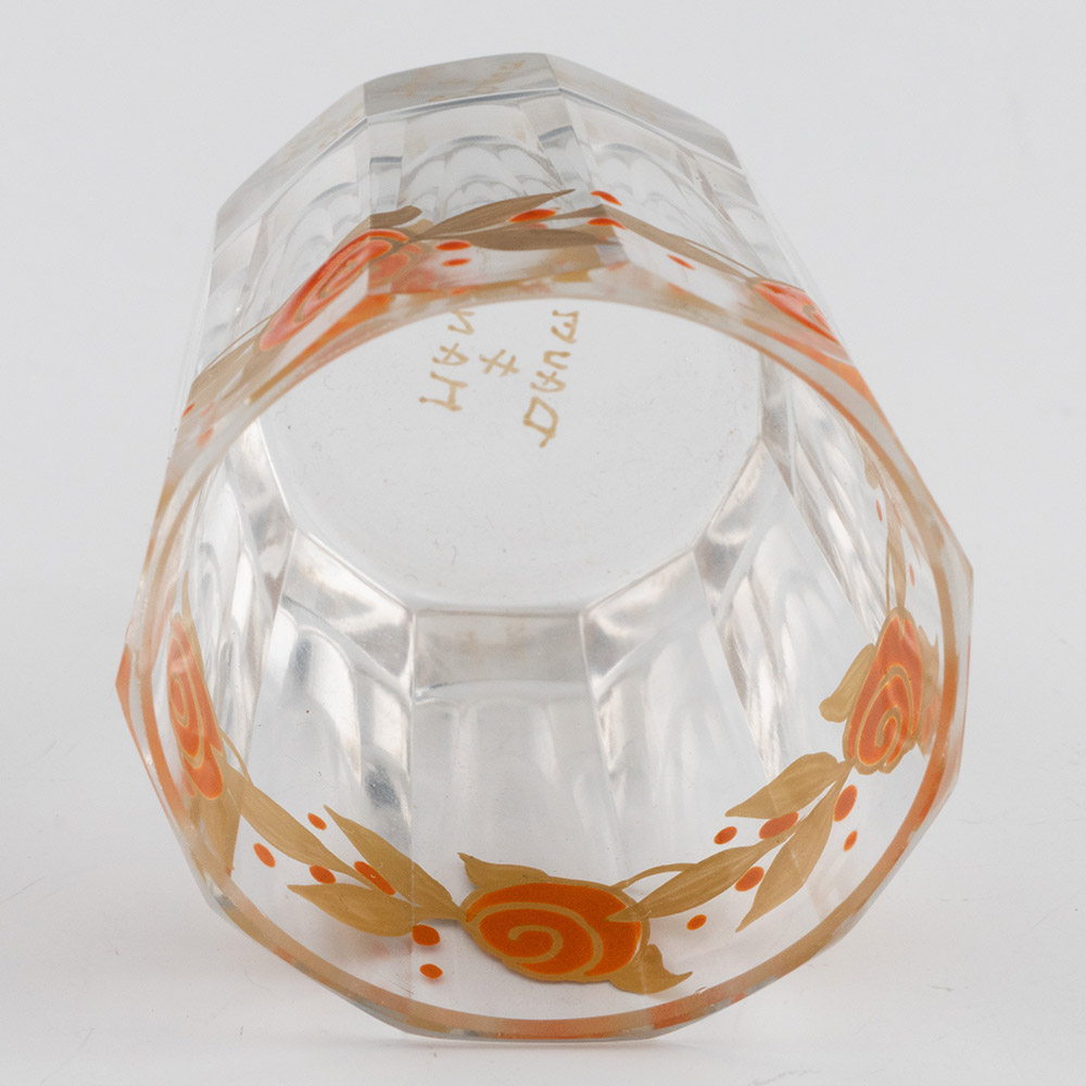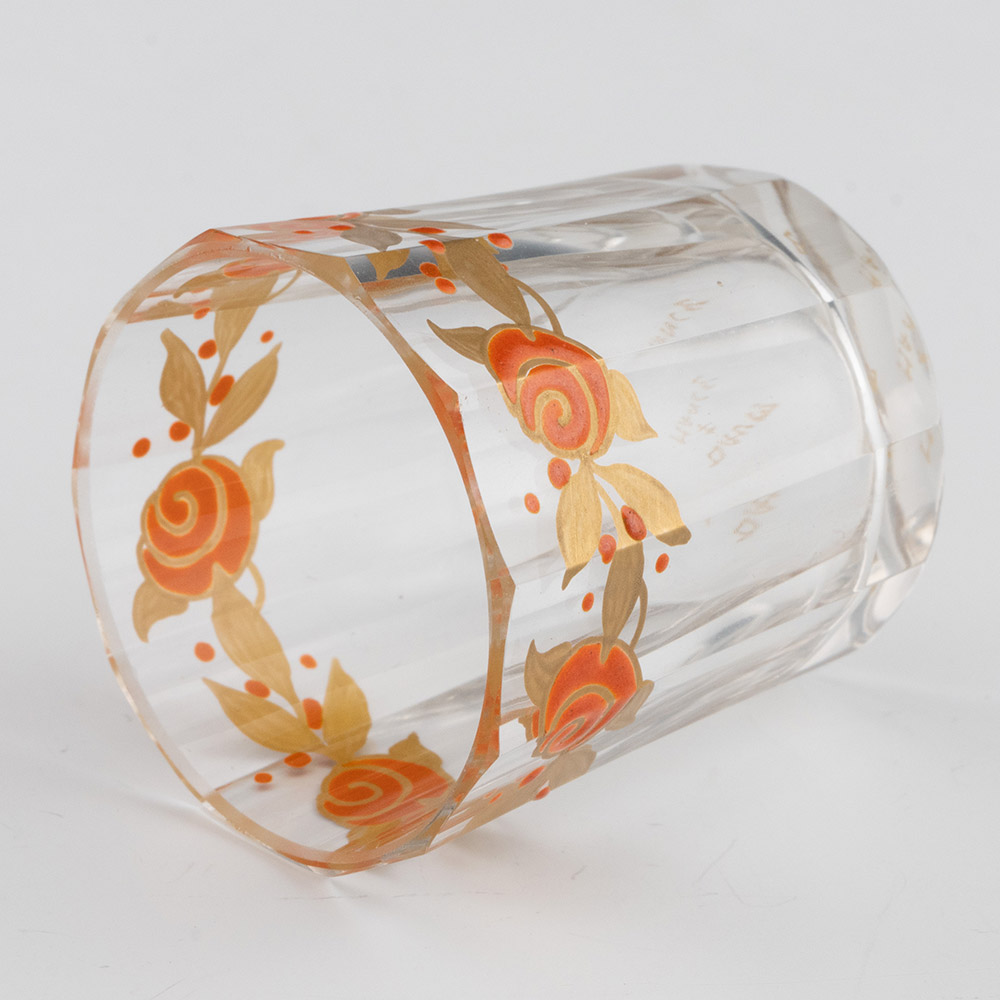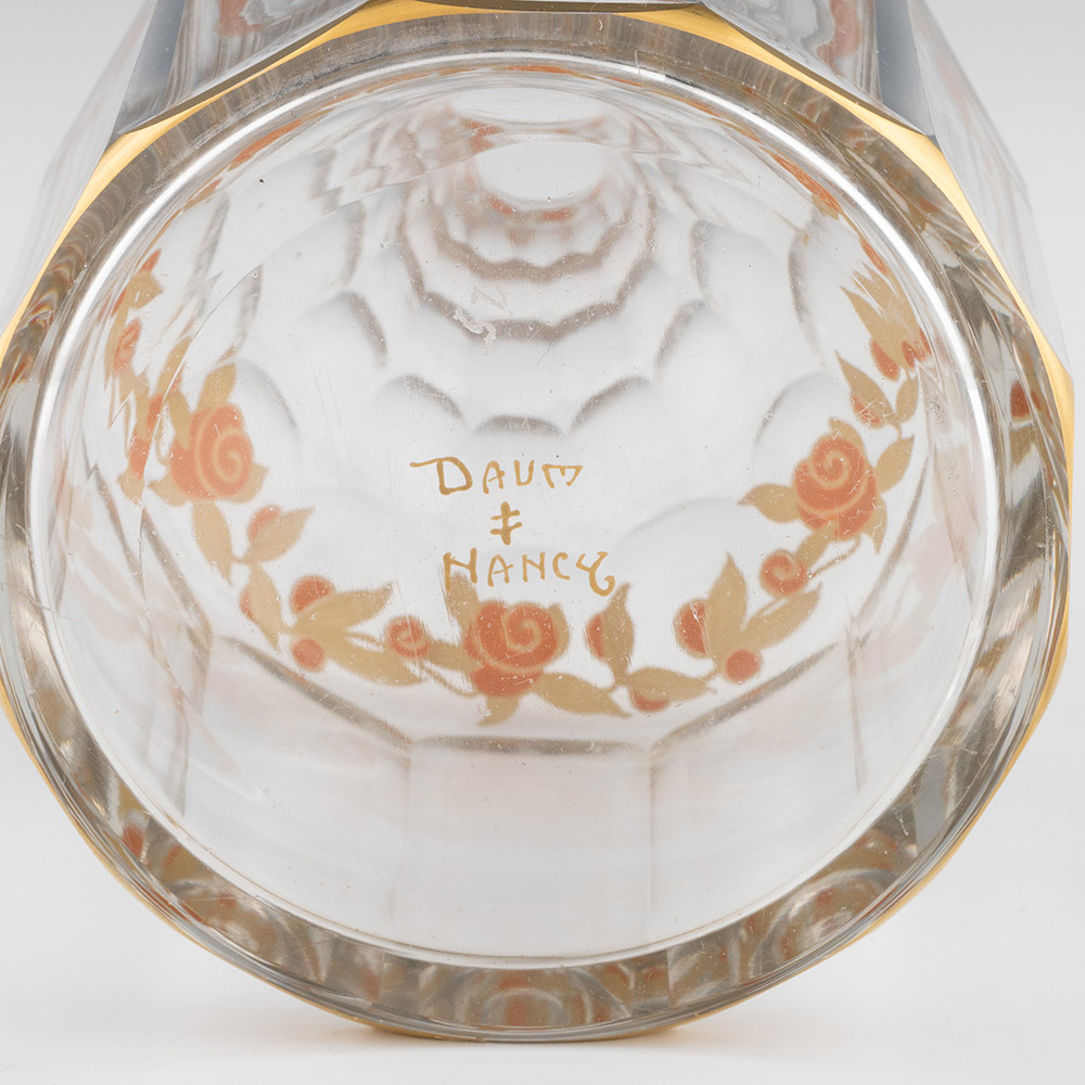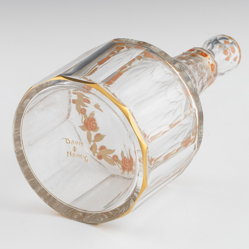 Stopper : Holow faceted stopper with gilt band and gilded and enamelled flower.