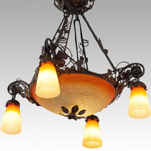 Many modern and contemporary lighting mass produced lights mirror the original Art Deco designs in their geometric shapes, clean angular form, symmetrical polished chrome arms and use of moulded or facetted glass. It will surprise many that the original Art Deco table lamp with a terraced chrome of bakelite base costs less than the deco reproduction.