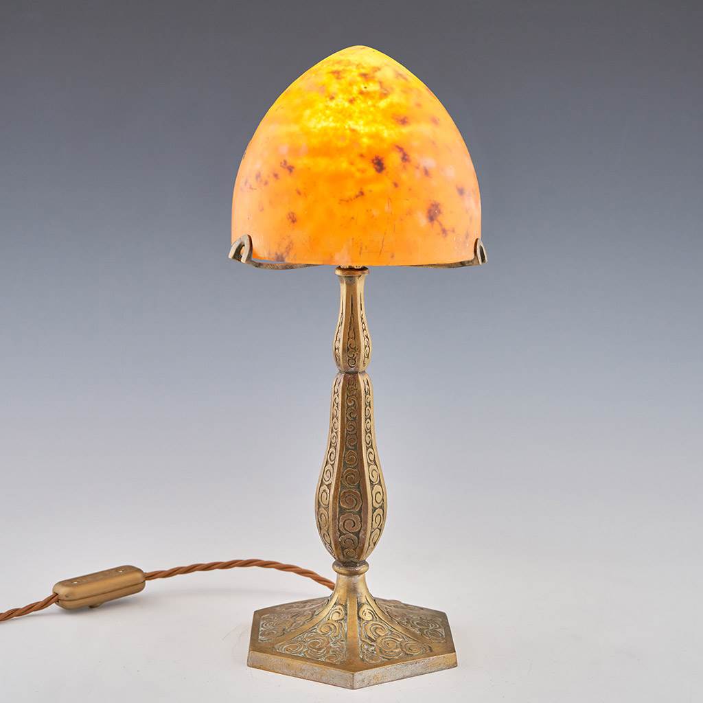 Name : Verrerie D’Art Lorrain Lampshade and Metal Stand c1925