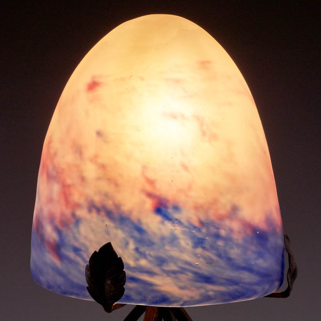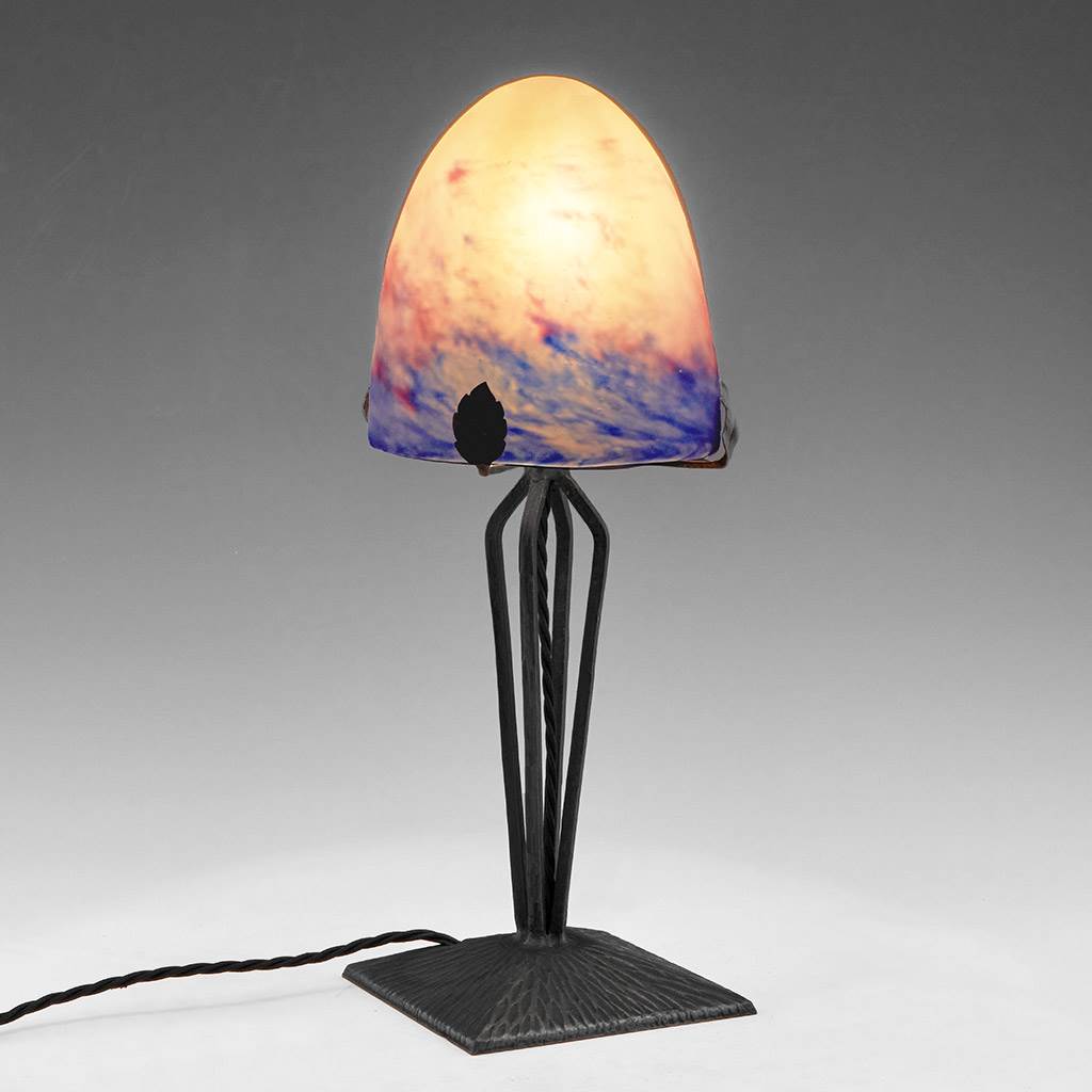 Name : Art Deco Pate de Verre and Wrought Iron Lamp c1930