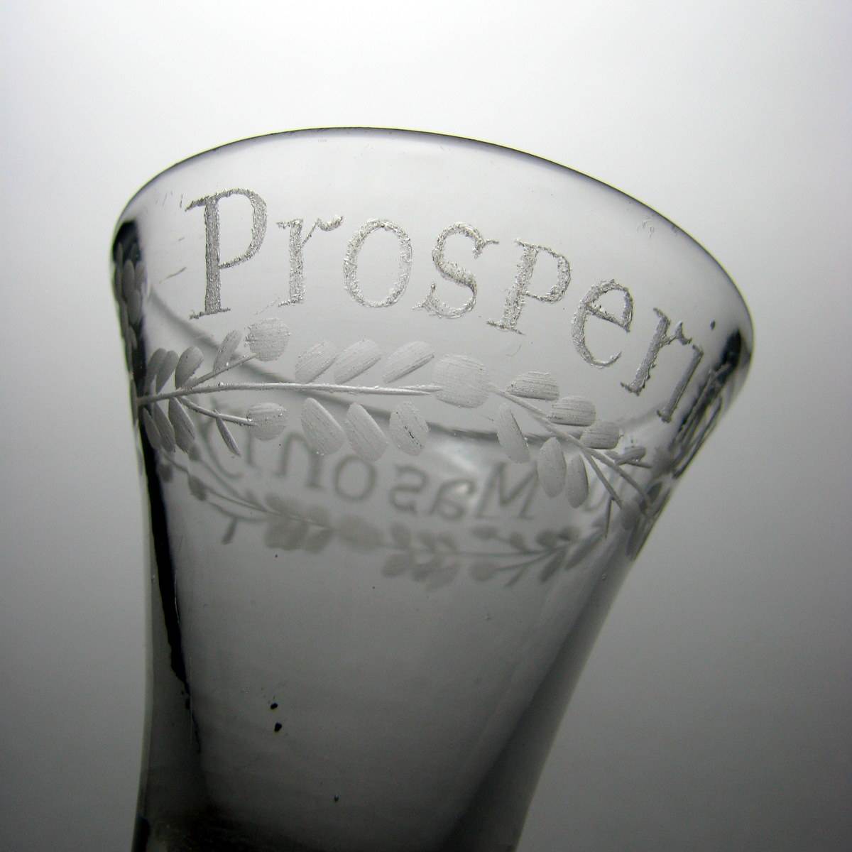 Bowl : Drawn conical bowl engraved with a floral border and the words ‘PROSPERITY TO MASONRY’