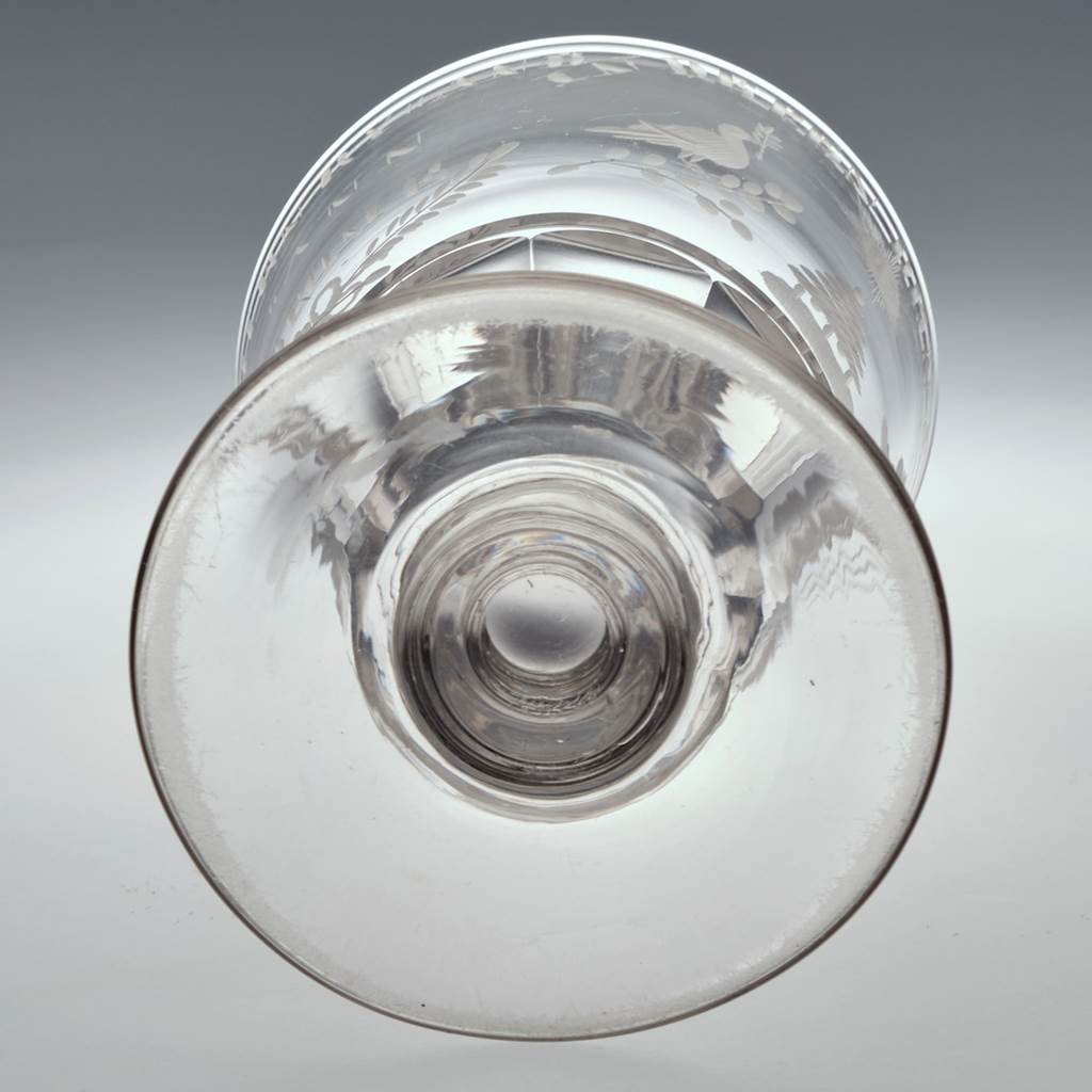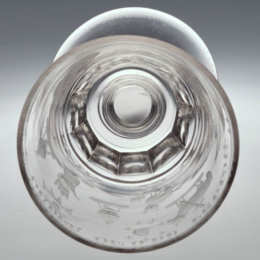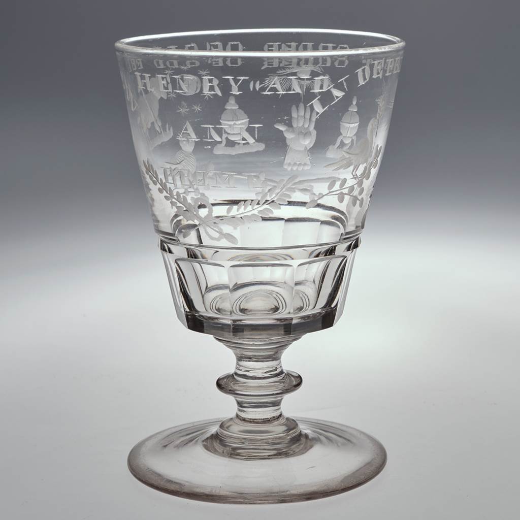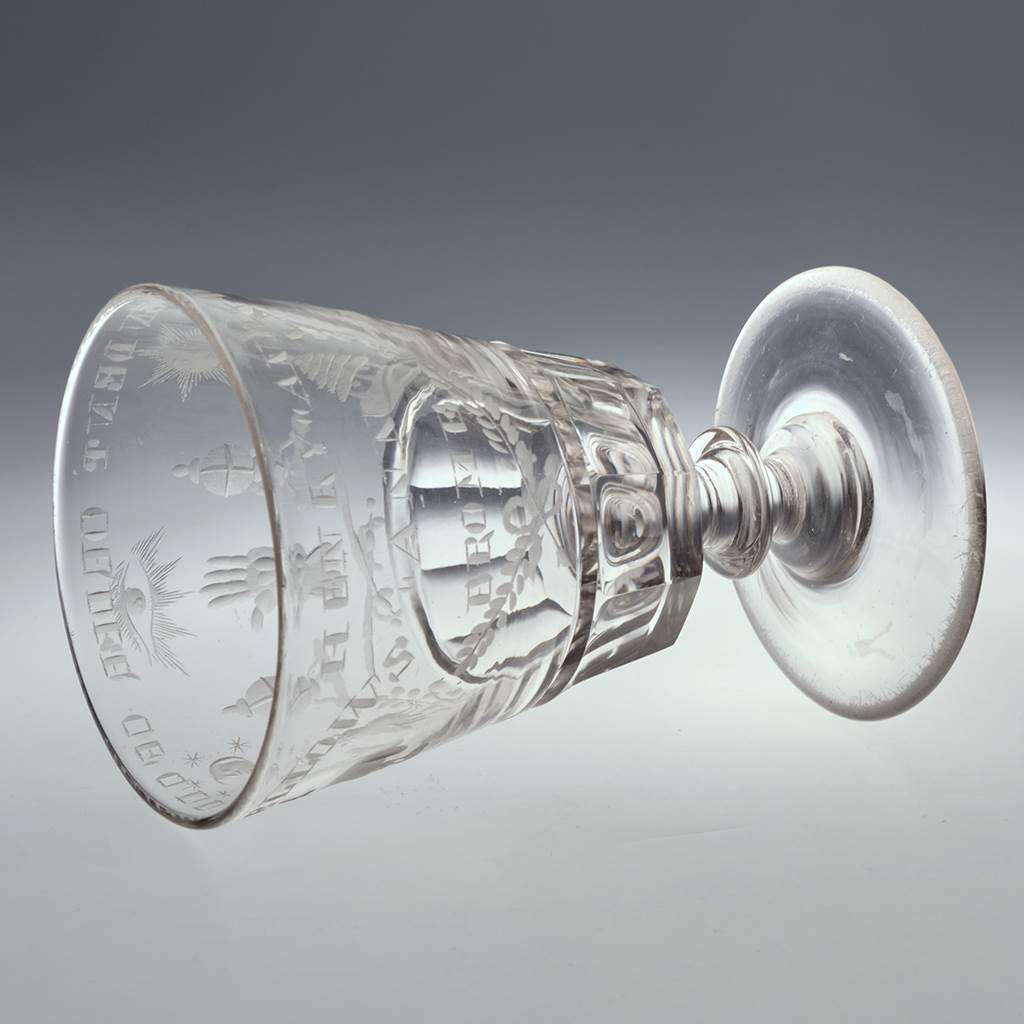 The Odd Fellows is an international fraternity originally operating in a similarly secretive way to the Free Masons but since becoming more publicly approachable.  “The Independent Order of Odd Fellows” is engraved on this rummer the independent order was founded in Manchester in 1810 as the Independent Order of Odd Fellows Manchester Unity. The original order had been divided by the Jacobite cause and many were dissatisfied with the way the order was now being run.