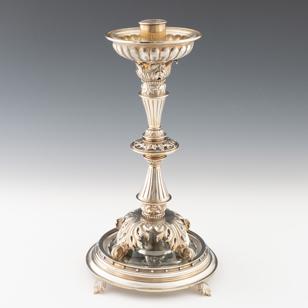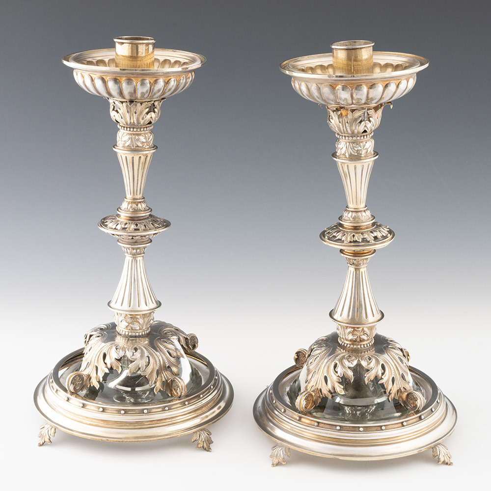 Gilded Silver Candlesticks with Glass Drip Pans c1880