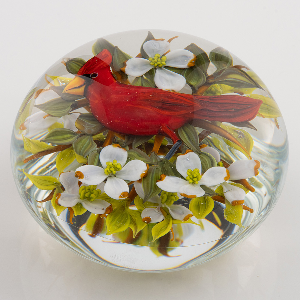 Heading : Rick Ayotte Cardinal and Dogwood Compound Paperweight