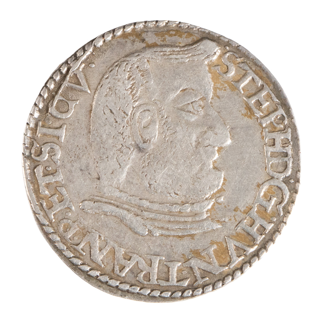 Stephan (Stefan or Istvan) Bocskai was a Hungarian nobleman brought up in the court of the Holy Roman Emperor Maximillian. He was elected Prince of Transylvania and Hungary in 1605 after leading a successful uprising against the Habsburg oppression. He refused to be king, wanting to keep autonomy, even when supported by the Ottoman empire. The Sultan Ahmed sent him a magnificently bejewelled crown to encourage him, but he would only accept it as a gift. During his short reign, he also negotiated freedom for Protestants to practice their religion. He died in 1606, possibly by poisoning. Our coin was minted posthumously.