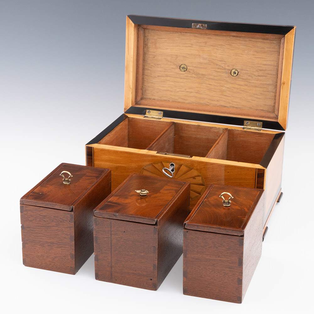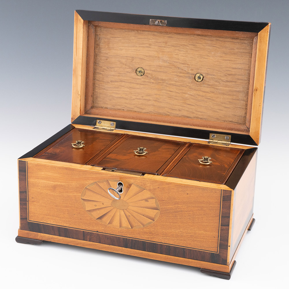 Heading : Three compartment Georgian tea caddy with inlay
