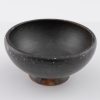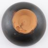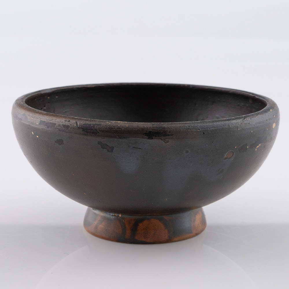 Description: A pottery cup with black glossy glaze with a pedestal base giving a sturdy foundation. One very special feature is that the potter’s fingerprints are recorded forever in the glaze where he held the cup with three fingers and a thumb whilst dipping it in the glaze (and a thumbprint underneath as he held the edge as he lay the cup down, upside down, to drain at the end of the process)!