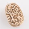 Description: The top depicts a scarab with detailed antennae and carapace. Below are carved hieroglyphics. It is pierced to allow it to be worn as a bead or amulet.