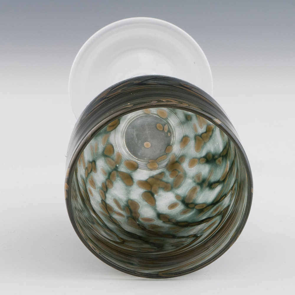 Colour : Swirled and mottled polychrome earth tone bowl, clear stem and foo
