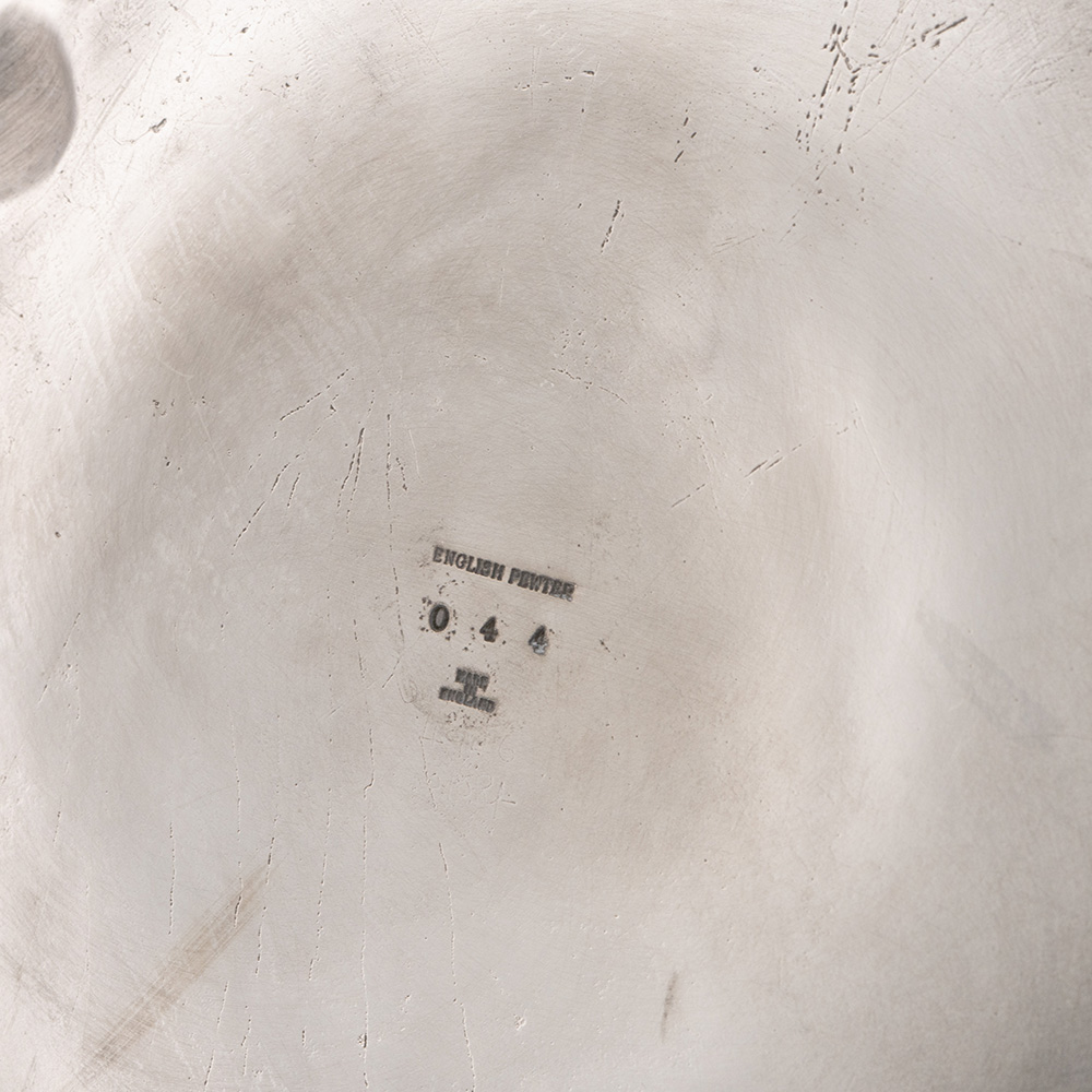 Marks : Stamped ‘English Pewter’. partial ”Made in England’ and numbered 044.