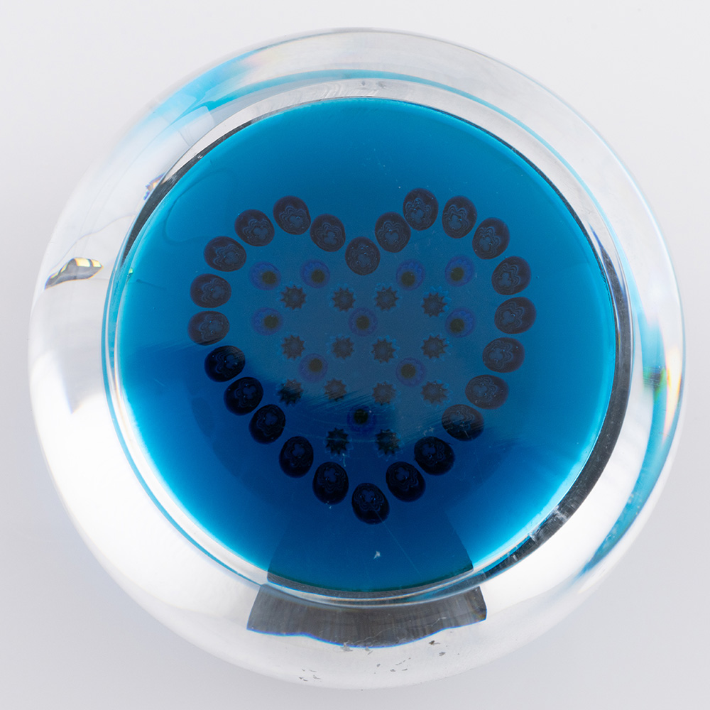 Features : Millefiori canes depicting a heart on a deep blue ground.