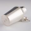 Description : Miniature cocktial shaker with side spout. Chain attaches cover of pouring lip to body.