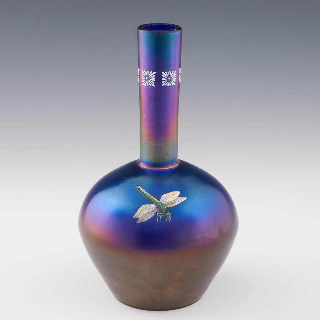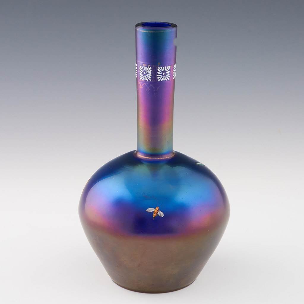 Heading :Early 20th century enamelled iridescent glass vase probably French or Austrian