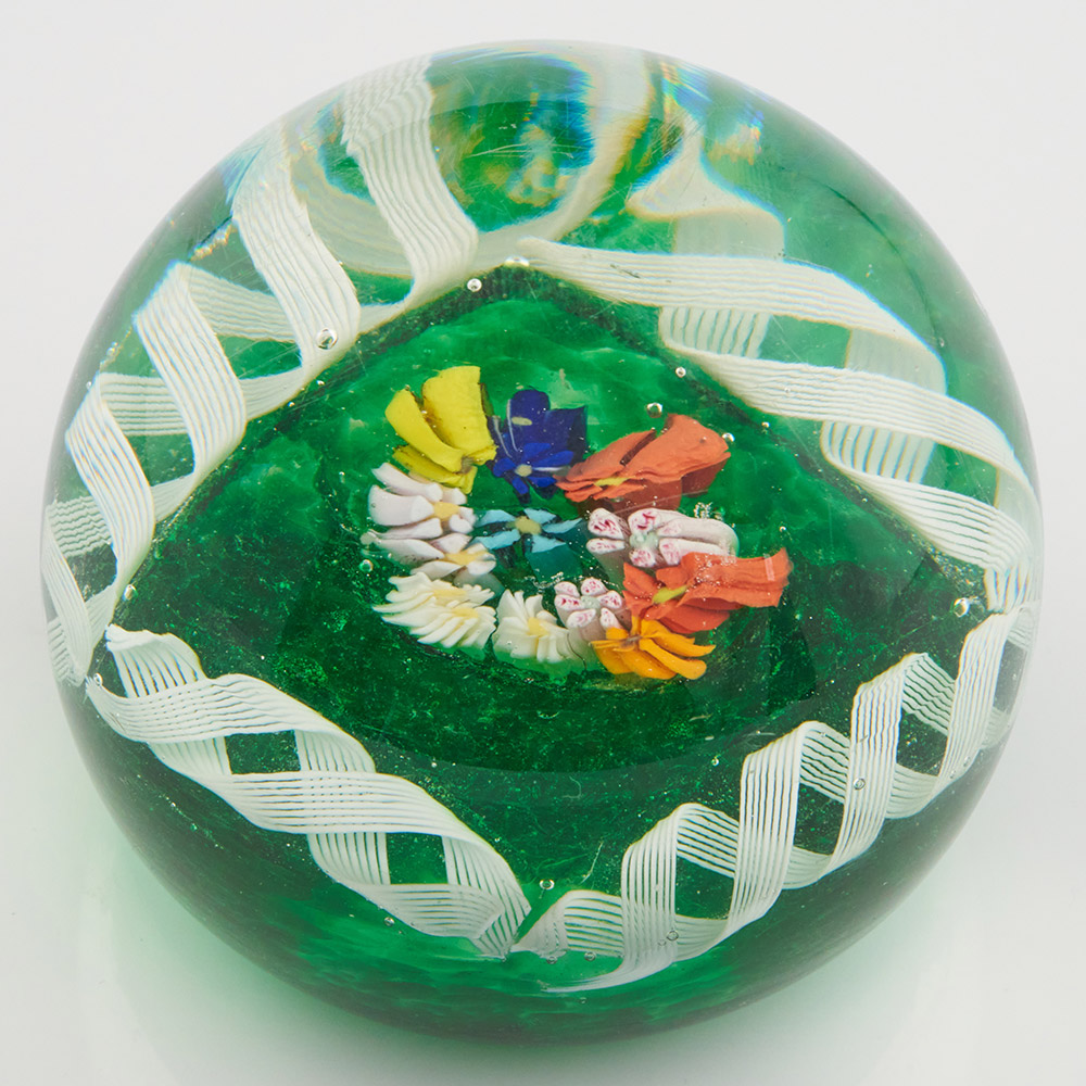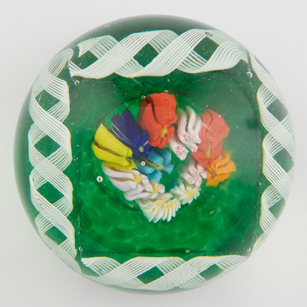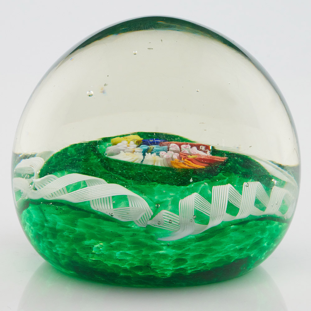 Heading : Fratelli Toso Paperweight With Latticinio Millefiori