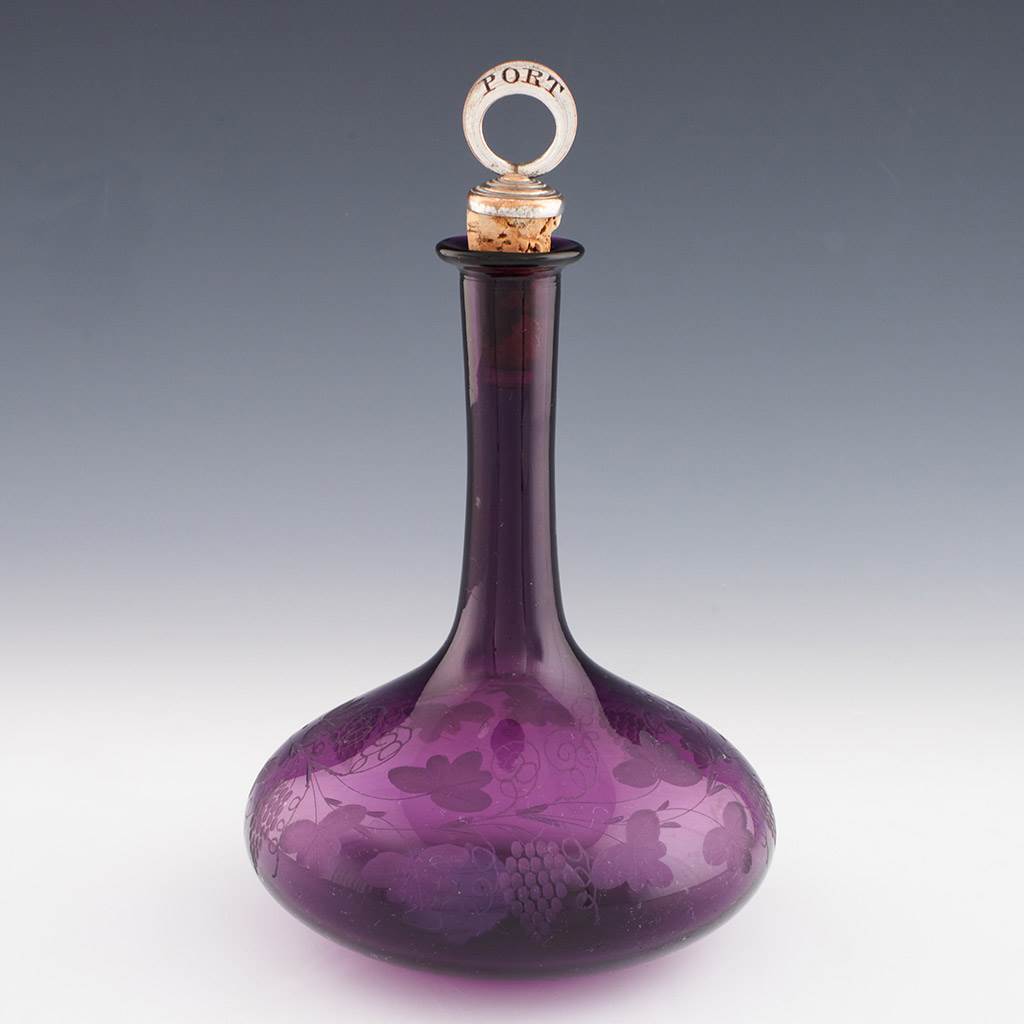 Heading : Finely Engraved Amethyst Glass Mell Decanter