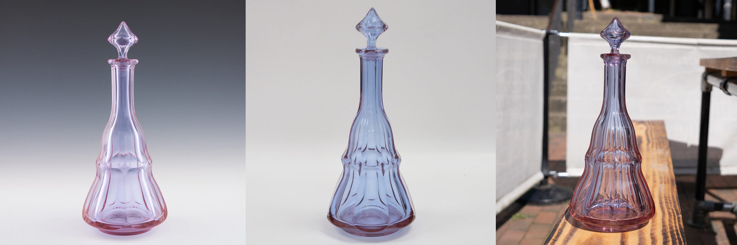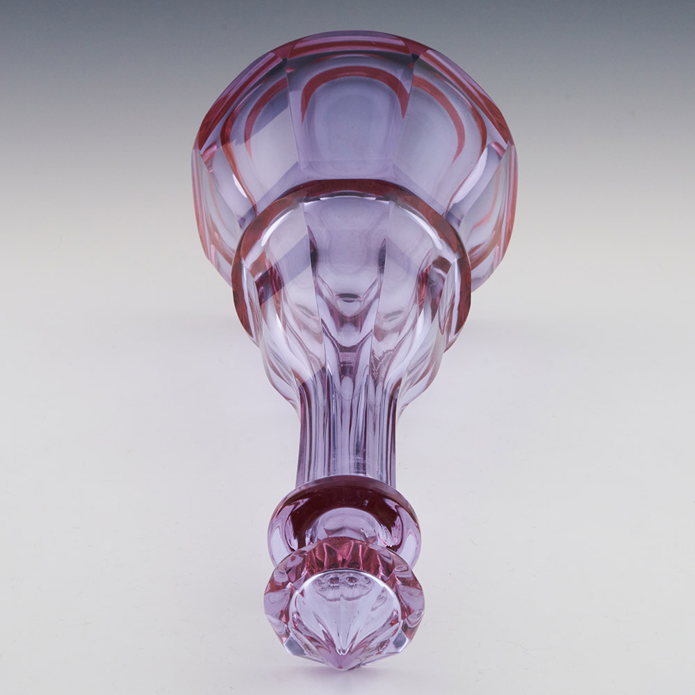 The influence of the Wiener Werkstatte and designs by Josef Hoffman and clearly evident. This was made by Moser or Riedel, both produced dichroid glass designs, indeed Moser were supplied by Riedel with glass billets. The colour changes from amethyst to topaz with natural to artificual lighting.