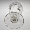 Bowl : Lipped round funnel. Engraved with a band of fruiting vines above a cartouche or thistles and roses ( note the absence of shamrocks) with monogram JH. Opposite two hands clasped in greeting below “MAID OF ERIN LODGE 517”