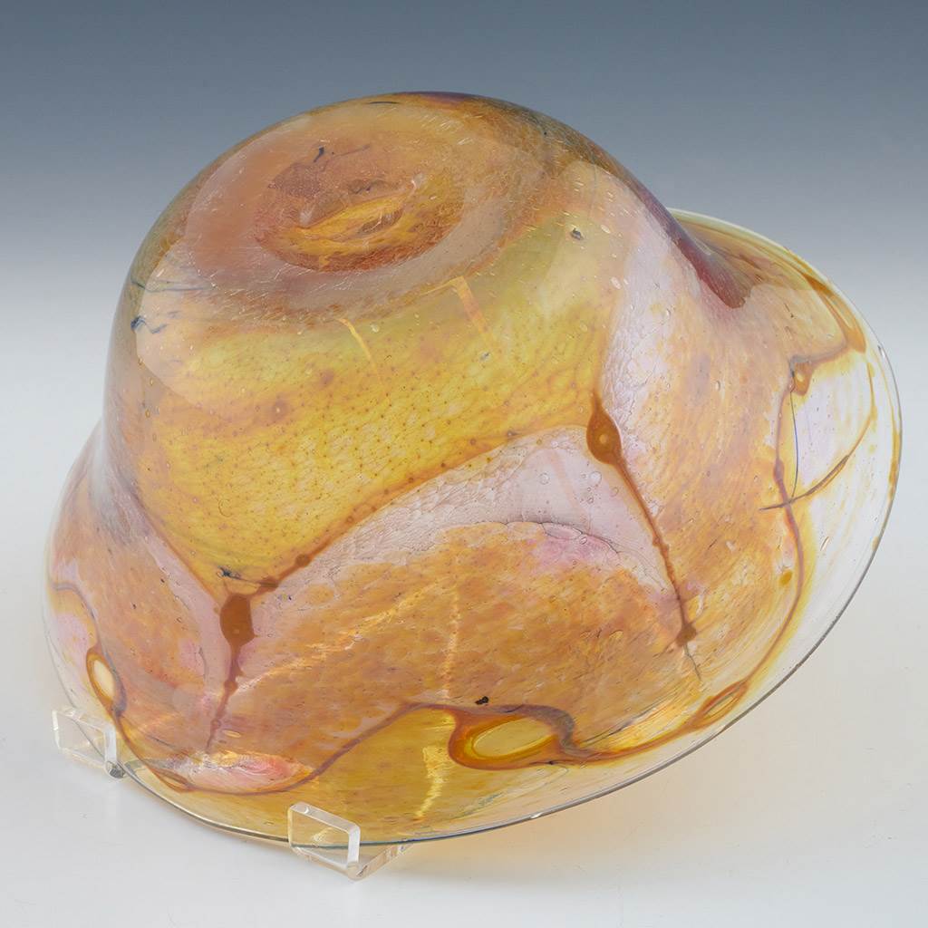 Bowl Features : A swirl of amber. pale lavender. and orange-red glass – made using silver chloride