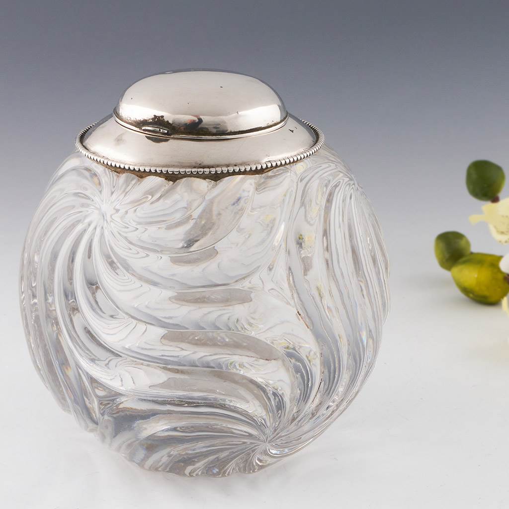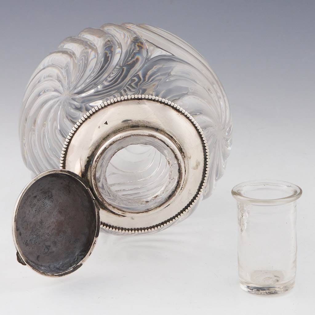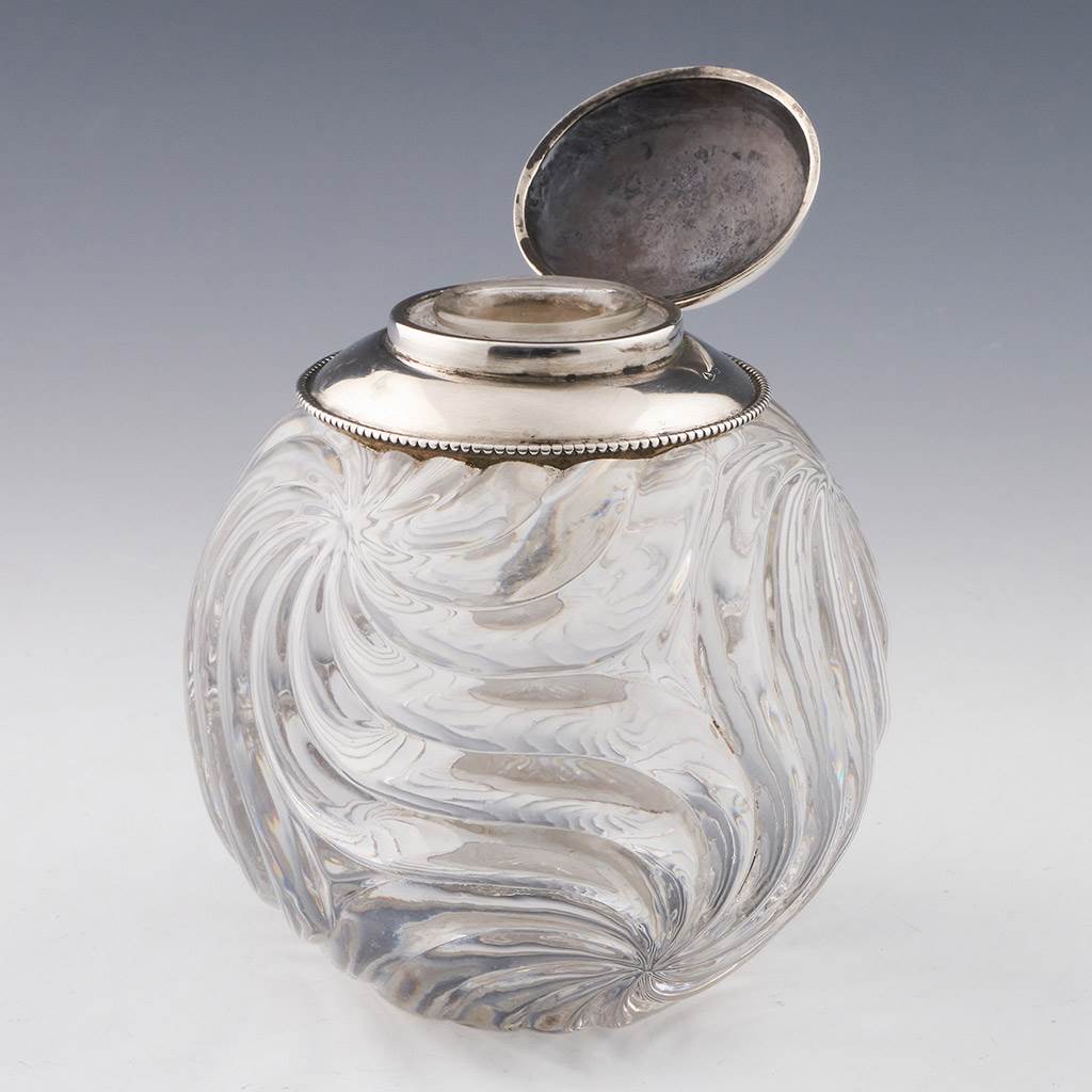 Features : Spiral moulded body and marked silver cap. Hinged domed cover and removable vial to hold ink