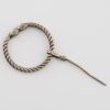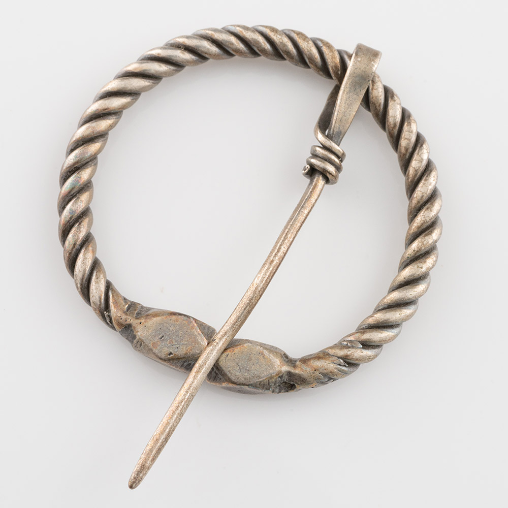 Features and Provenance: This type of penannular brooch (also known as an omega brooch) was worn on the shoulder or chest to close a cloak. The style of this brooch also imitates the neck torc and gives it is alternative name. Brooches like this were used from Roman times and the Celts Saxons and Vikings all had there own versions. As buttons were still to be invented, brooches were used well into the medieval period.