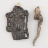 Features and Provenance: The figure is St. Leonard who is depicted wearing vestments and fetters as he was the patron saint of prisoners and also pregnant women (make of that what you will!). His shrine was in France at Noblat on the way to Compostela in Spain and were used as proof of visitation when making penance. Badges like this are found in Britain but are not common which may be associated with the fact that during the Hundred Year’s War shrines and a cult dedicated to St. Leonard were established when pilgrims could not get to France.