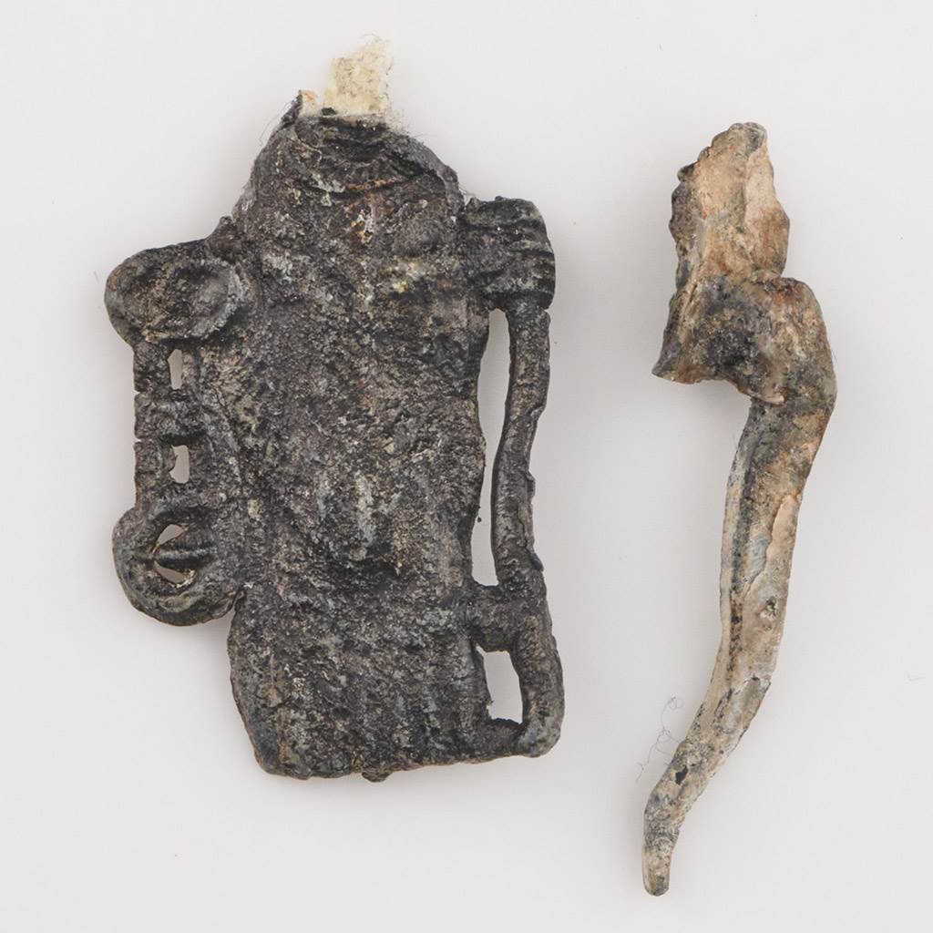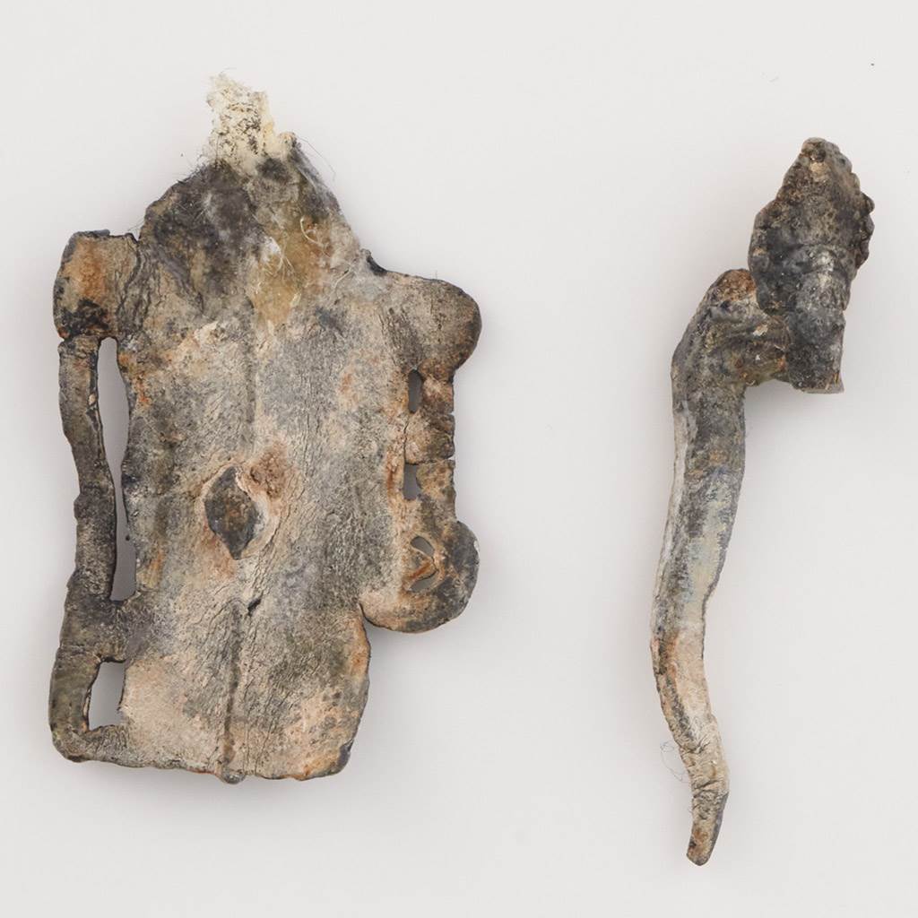 Description: A pilgrim’s badge of St. Leonard with detached pin made of lead alloy.