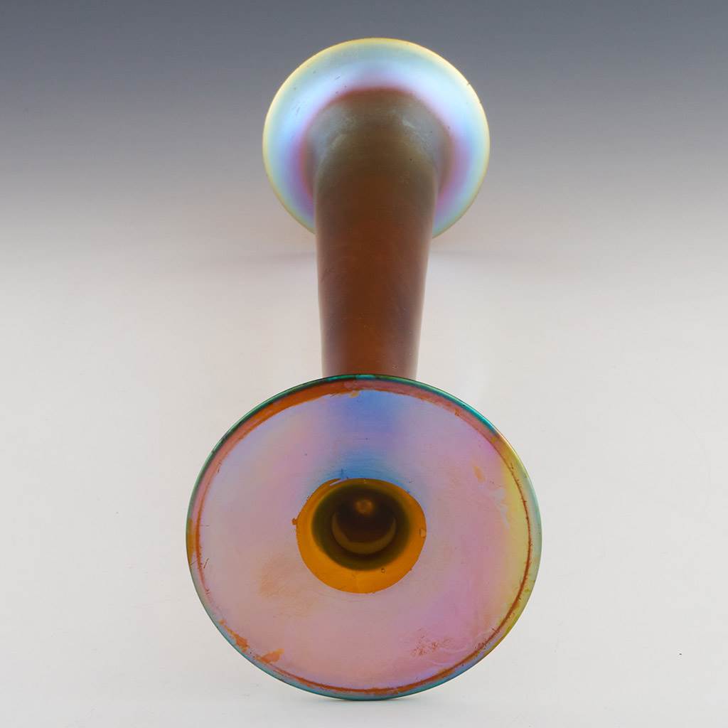 Bowl Features : Tall tapered trumpet form with gold iridescence.